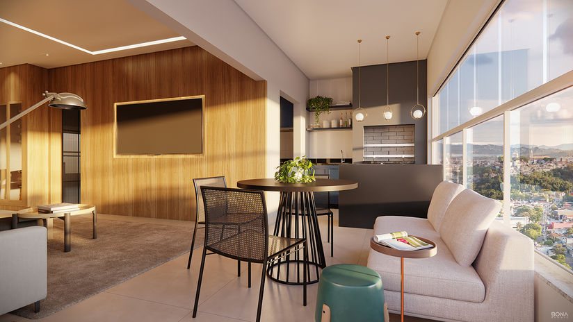 São 3 dormitórios, sendo 1 suíte, varanda gourmet totalmente integrada ao living e à cozinha, garantindo assim muita amplitude e luminosidade ao espaço.